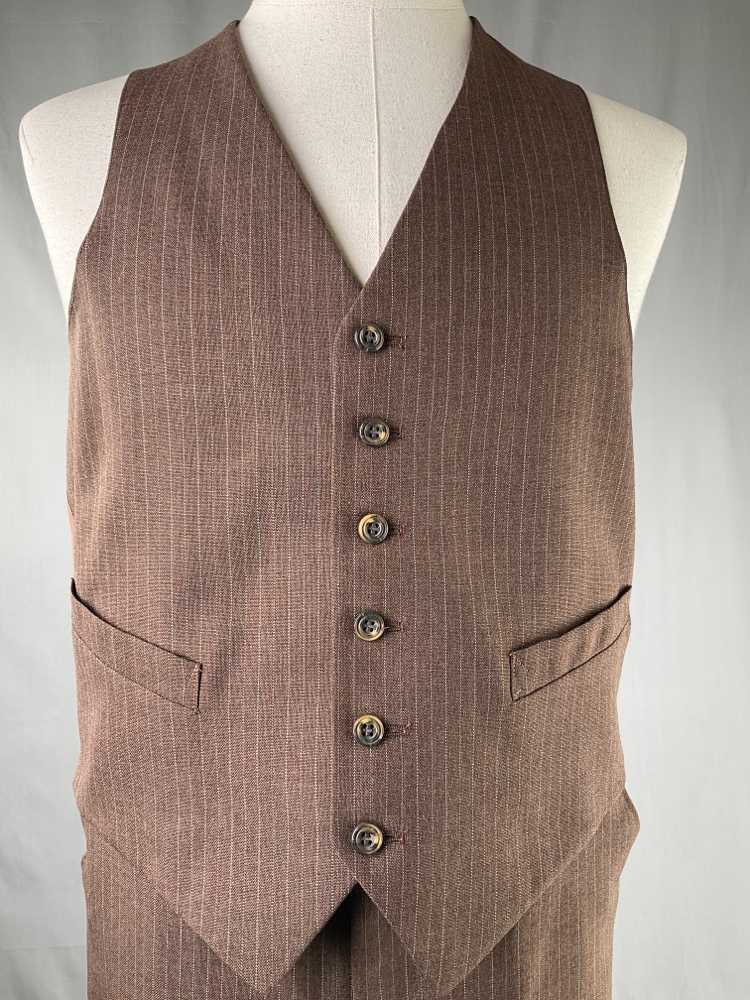 Mens, 1970s, 3 Piece Suit, 42, Reg, Brown, White, Wool, Pinstripe, Sears And Roebucx, Vest, 6 Small Tortoise Shell Button, Two Welt Pockets, Brown Satin Back And Lining, Excellent